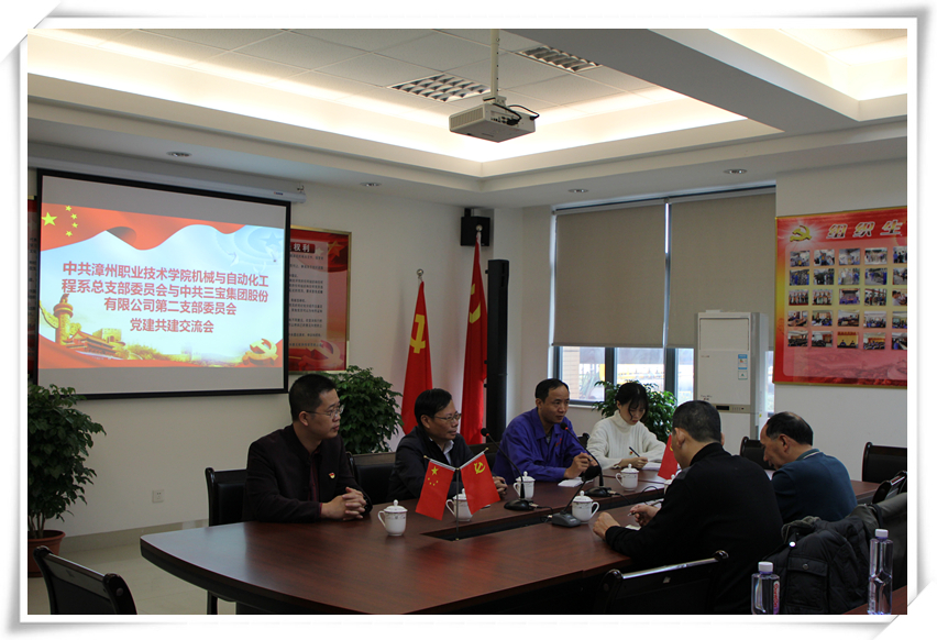 12月15日上午,漳州職業(yè)技術(shù)學院機械系黨總支與三寶集團第二黨支部舉行黨建共建交流座談會,全面拉開校企黨建共建的帷幕,漳州職業(yè)技術(shù)學院機械系黨總支書記葉凱、副書記藍志福,三寶集團黨委書記林軍、黨委副書記兼第二支部書記陳曉華、黨委委員吳長錫、黨校副校長湯勇華等相關(guān)領(lǐng)導及雙方黨員代表,約60人出席本次會議。