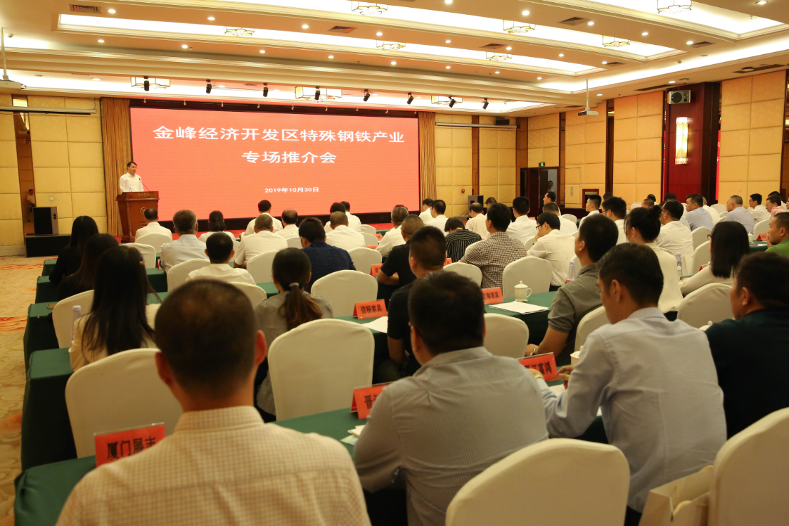 10月30日下午,金峰開(kāi)發(fā)區(qū)特殊鋼鐵產(chǎn)業(yè)專場(chǎng)推介會(huì)在漳州賓館舉行。漳州市委常委吳文團(tuán)、薌城區(qū)委書記胡棟良、區(qū)長(zhǎng)石振棋、三寶集團(tuán)董事長(zhǎng)王光文以及來(lái)自鋼鐵產(chǎn)業(yè)中下游企業(yè)的本外地客商共約100人參加此次專場(chǎng)推介會(huì)。