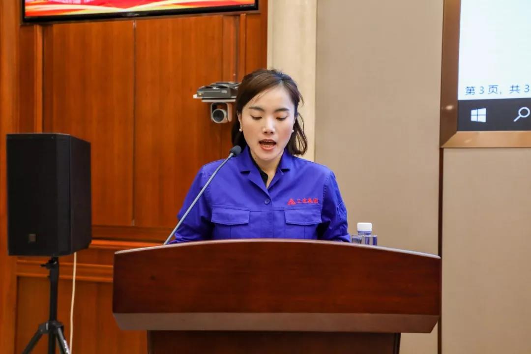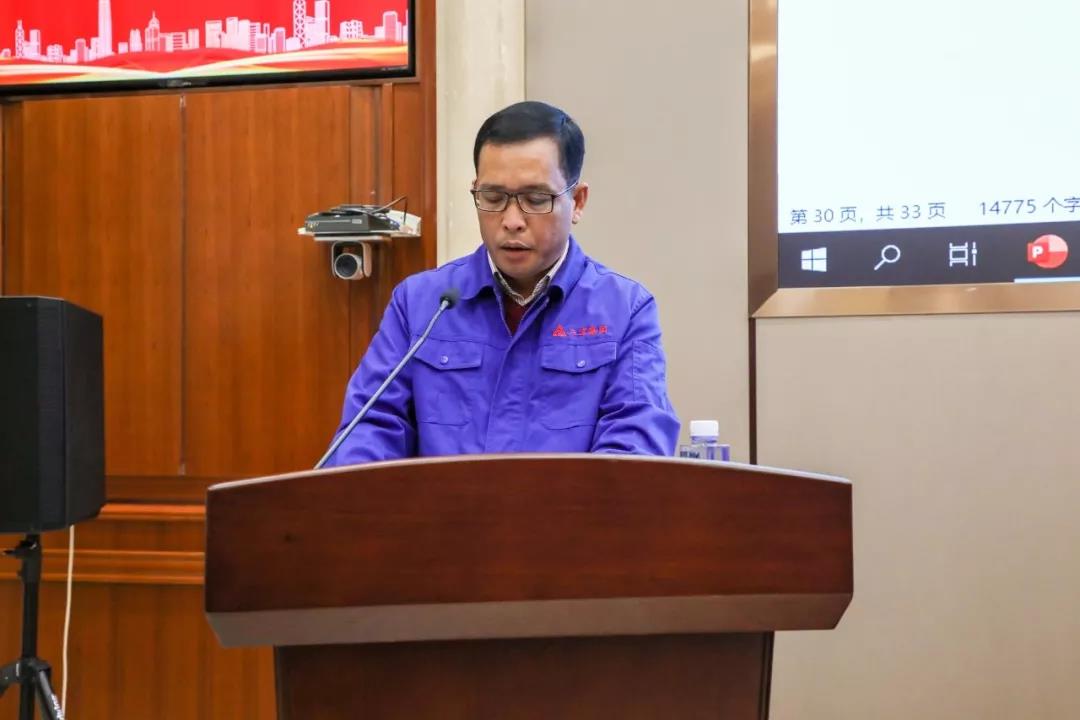 圖為生產(chǎn)副總吳長錫作《三寶集團(tuán)2019年度工作總結(jié)報(bào)告》