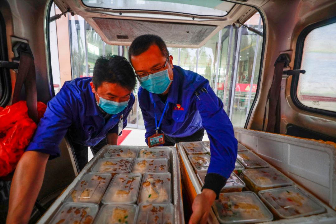 黨員正準(zhǔn)備為集中觀察點(diǎn)的人員送去午餐