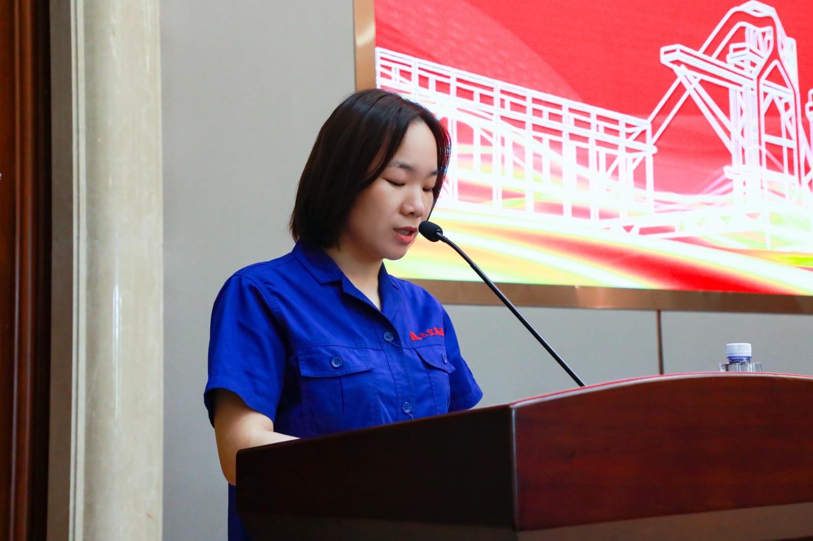 圖為財務部經(jīng)理蘭秀芳作2021上半年度“從嚴治本”完成情況匯報